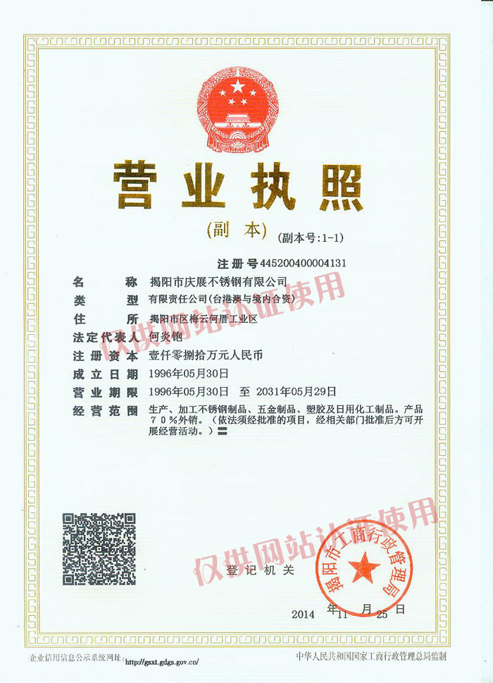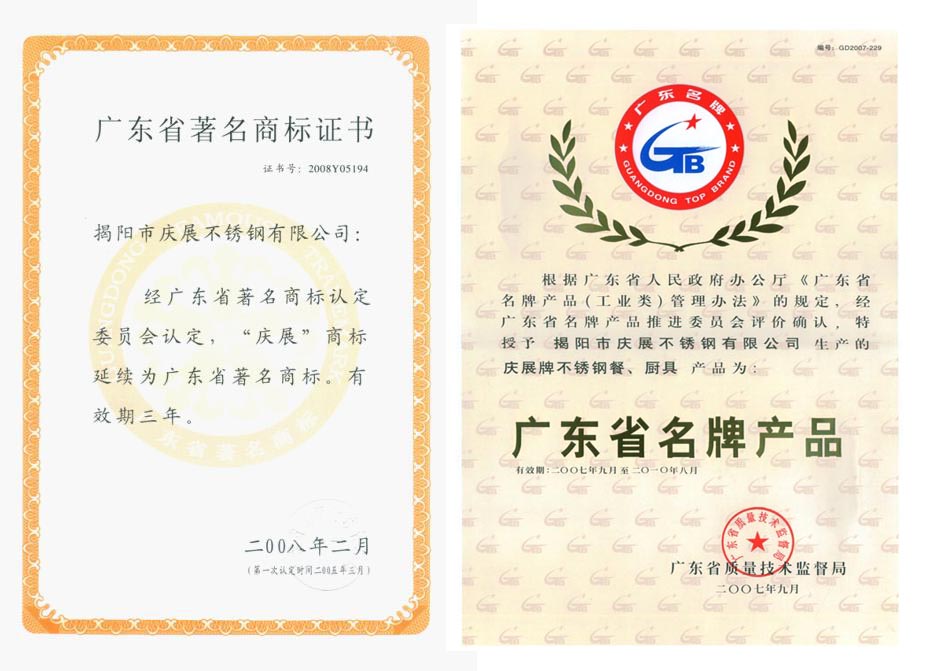 2000年3月被评为重合同守信用单位 2003年—2006年连续四年被评为全国外商投资双优企业2004年获得银行系统AAA级企业称号2004年9月获得广东省名牌产品称号2004年7月 广东省质量协会单位会员2000年-2005年劳动管理信得过单位2005年3月获得广东省著名商标2005年被评为中国质量检验协会团体会员单位2004年-2006年连续3年被评为纳税光荣户2007年获得国内不锈钢企业唯一“中国驰名商标”